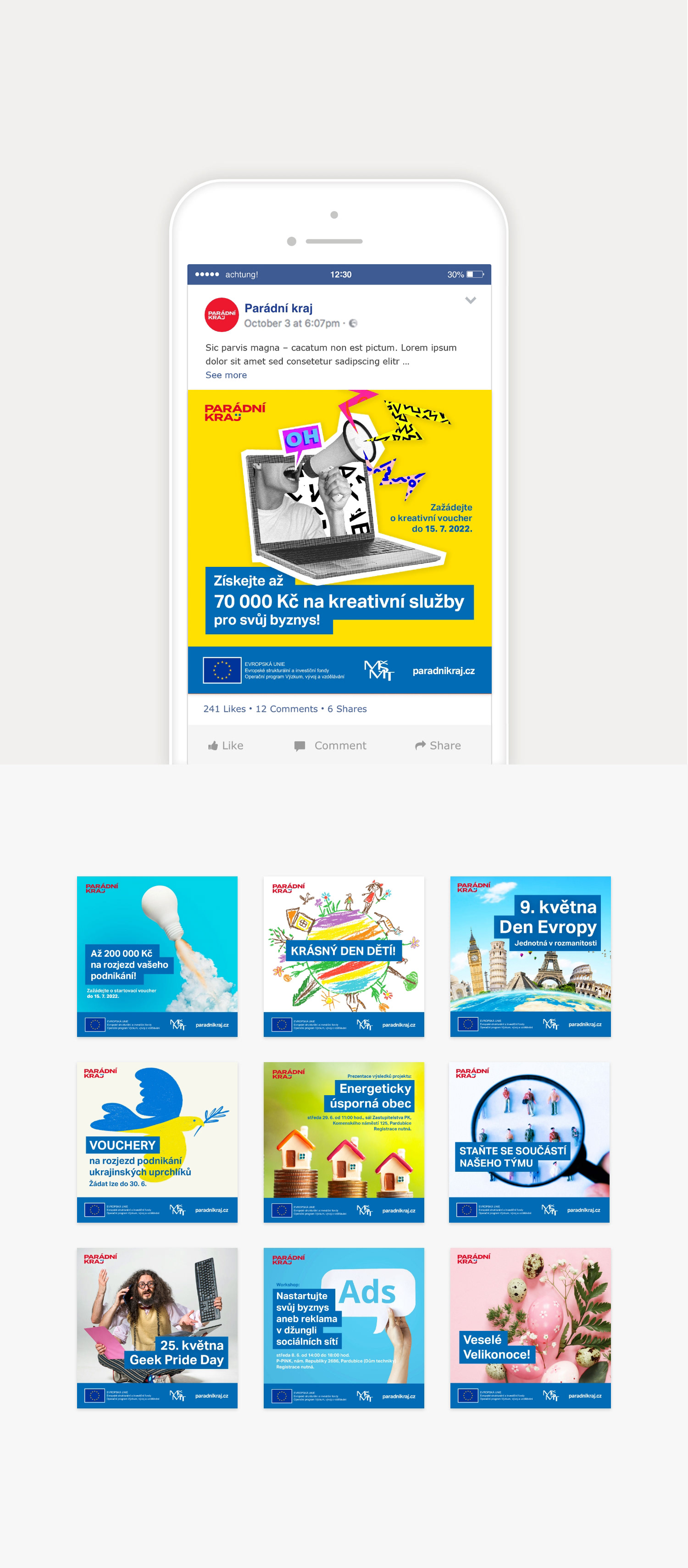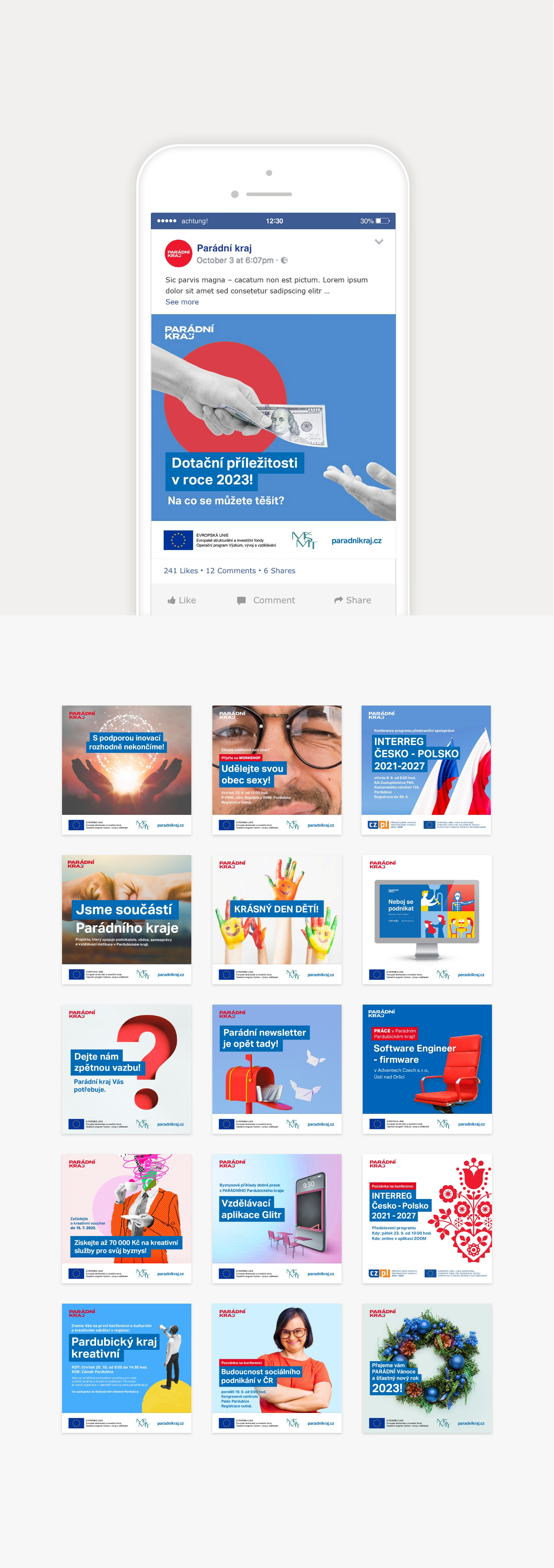 Vizual Style for Campaign for Pardubicky kraj in Czech Republic, icluding Logotypes, website design, print and online promo materials, infographics etc.